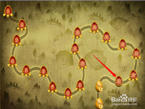 第二步:按照红色箭头,点击第十八关进入游戏。