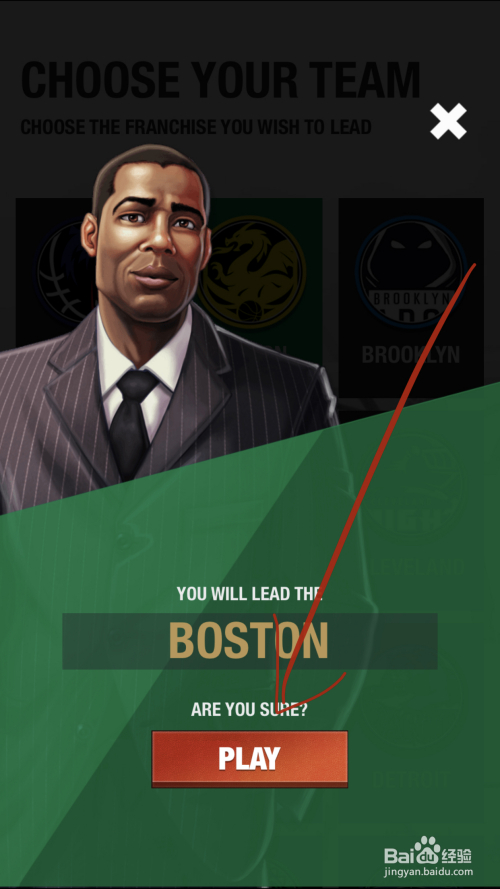 选择并确认您地点的球队。
