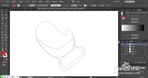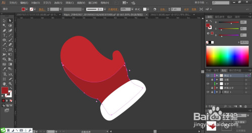 复制手套的上方路径再摆列到最底层用红灰色填充,继续复制一下手套的上方布局件并用白色填充,做出高光的结果,完当作手套图片设计。