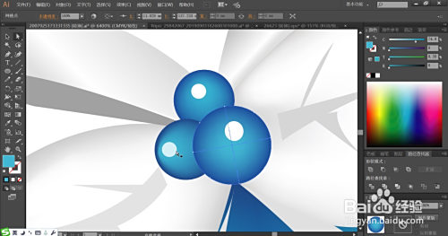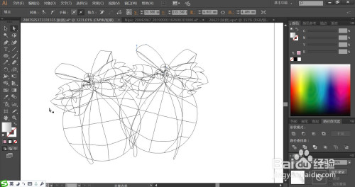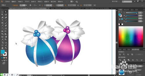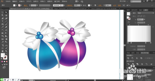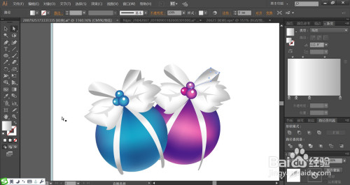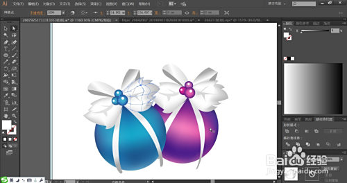 最后,我们用灰白色的渐变填充蝴蝶结的外部路径,再用暗灰色填充蝴蝶结的内部路径,右侧的路径用网格东西点击做出左亮右暗的结果,完当作水晶球图片设计。