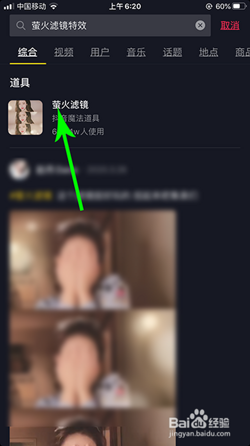 搜刮出后,点击下方的“萤火滤镜特效”。