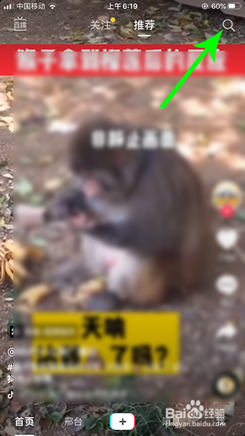 打开手机桌面的抖音后,选择右上方的“搜刮图标”。