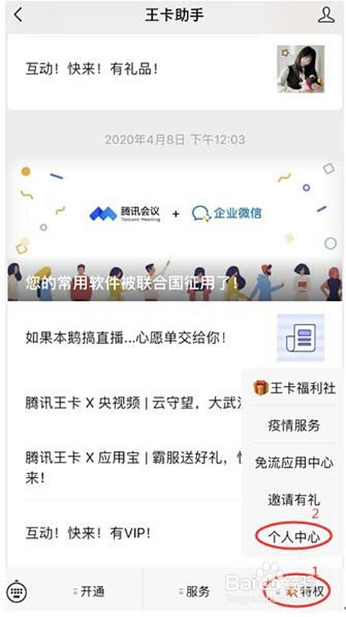 存眷“王卡助手”微信公家号,点击“特权-小我中间”;