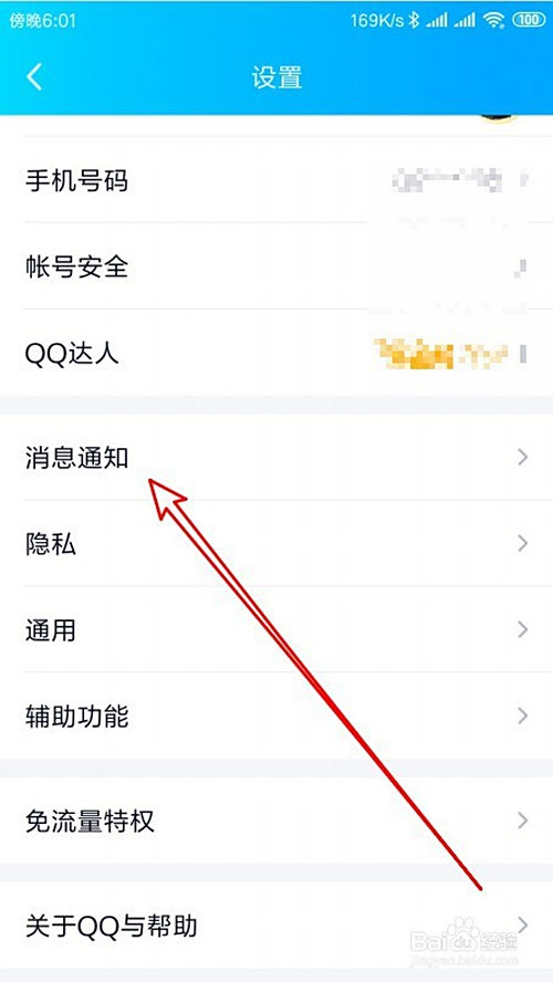 这时会打开手机QQ的设置页面,点击动静通知设置项。