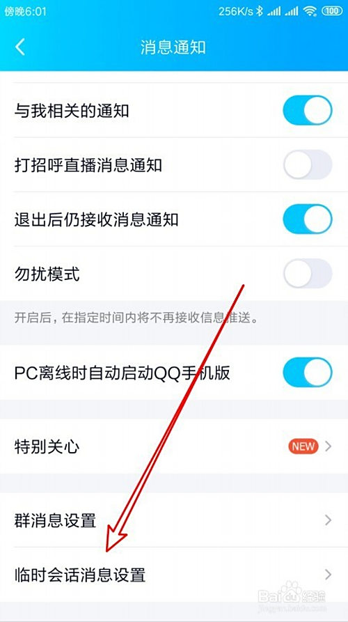 接着在打开的页面点击姑且会话动静设置的菜单。