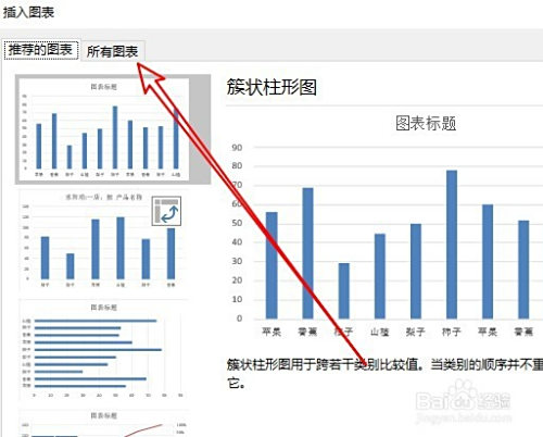 接着再打开它,插入东西栏,点击图表的睁开按钮。