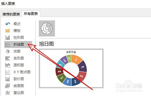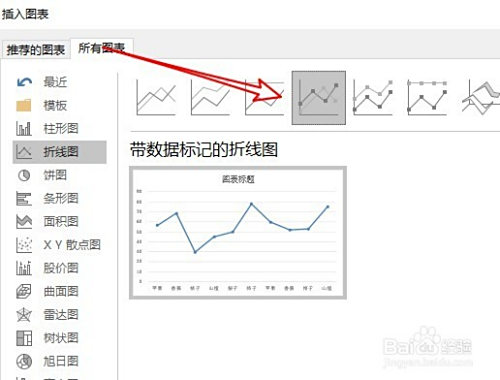 然后再打开到折线图右侧窗口,点击选择响应的折线图类型。