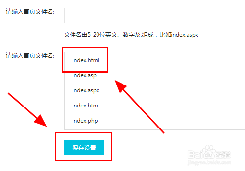 进入网站办事器办理节制台,点击<默认首页选项>,并将<index.html>设置为默认首页,完毕后点击<保留设置>;