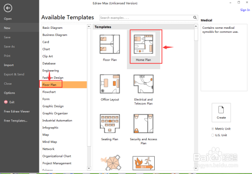 1、打开Edraw Max,在楼层平面图中双击衡宇设计;