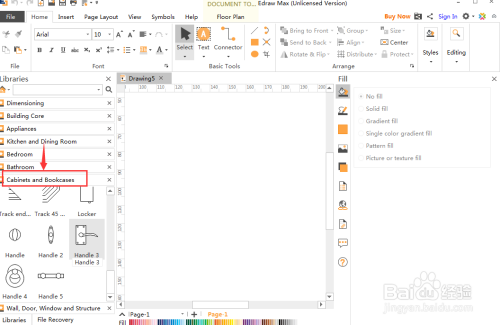 进入衡宇设计类此外符号库中,点击储藏柜和书架;