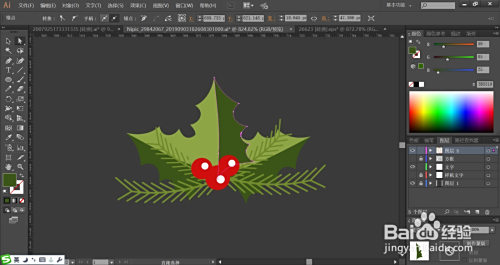利用红色填充叶片中心的果实,再用白色填充高光路径,利用网格东西点击一下叶片的左侧让其呈现渐变色的结果。复制一下叶片的高光放到最底层再用白色填充让其呈现亮光边缘结果,完当作红果图片设计。