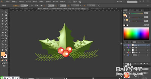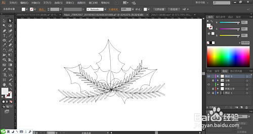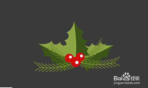 利用钢笔画出摆布对称的大叶片,再用圆形东西画出叶片中心的红果的细节路径,紧随后,我们再画出大叶片下方的细叶片的路径。