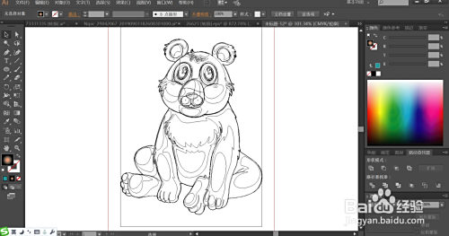 利用钢笔画出笨熊的头部细节,重点绘制耳朵、眼晴与嘴巴,描画出头部各个元素的色彩明暗细节路径,再绘制出笨熊的身体动作,绘制出从亮光与暗光的条理结果。
