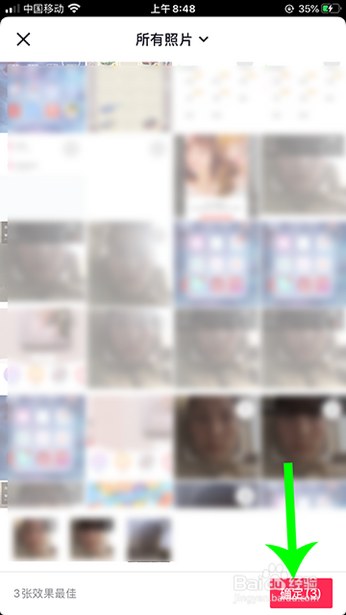 进入手机相册,选择三张添加的照片,点击“确定”。