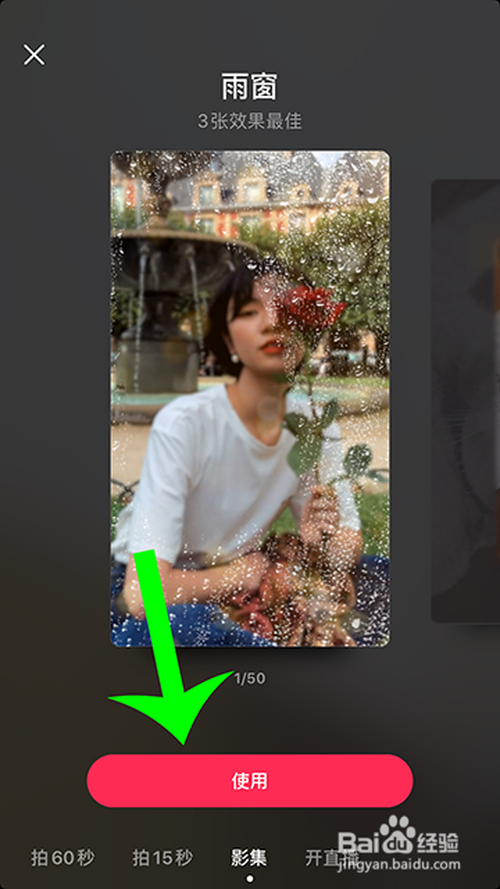 进入影集后,选择第一张“雨窗”下方的“利用”。