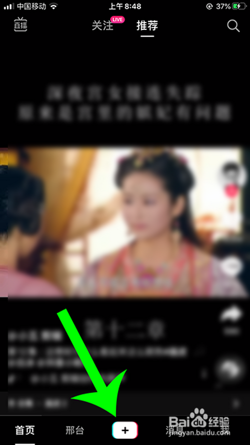 起首,打开抖音短视频进入后,点击下方的加号。