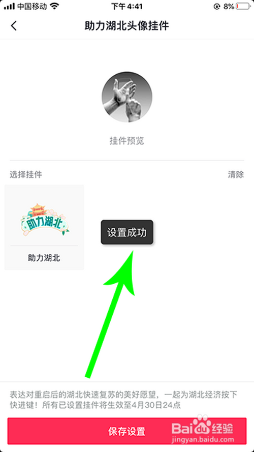 进入头像挂件后,选择“断根”,再点击“保留设置就可以了。”
