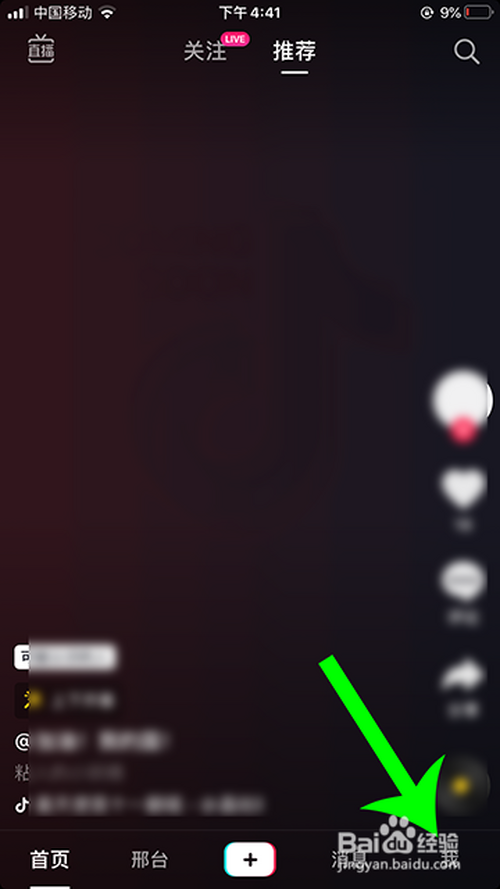 进入抖音短视频后,点击“我”。