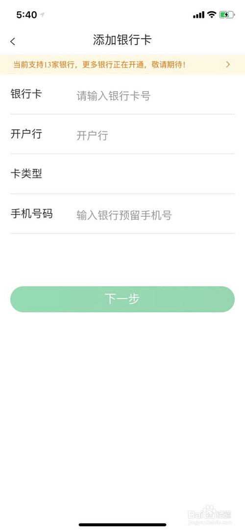 填写需要绑定的银行卡信息,勾选《钱包用户和谈》,点击“下一步”。
