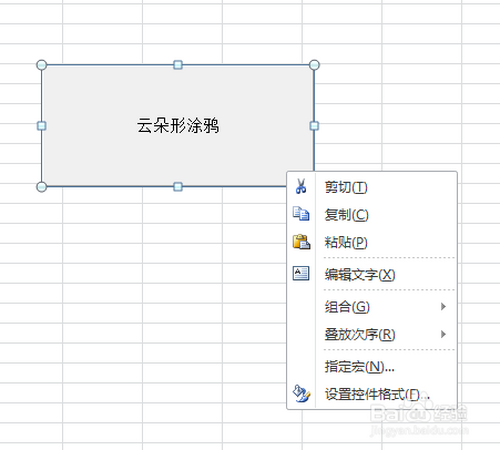 7.将按钮控件定名为“云朵形涂鸦”,然后点击右键,选择“指定宏”选项。