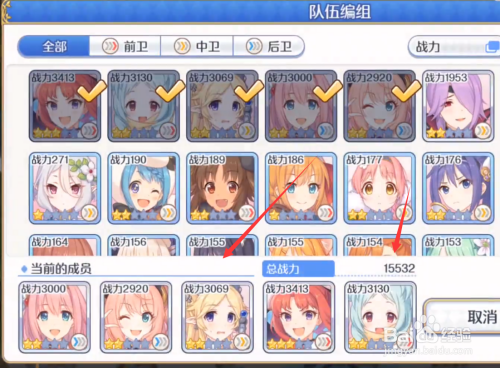接下来大师查看小编的声势,本家儿要都是一些很简单的脚色,本家儿要上一些奶量和高输出的脚色。如下图所示。