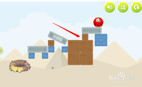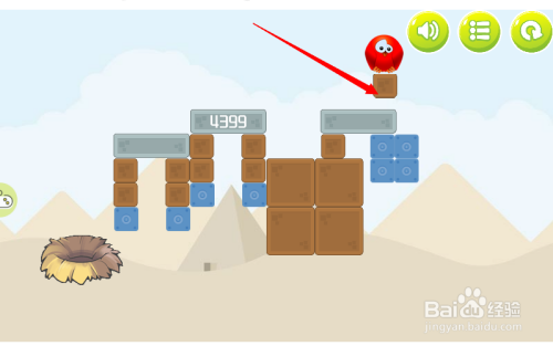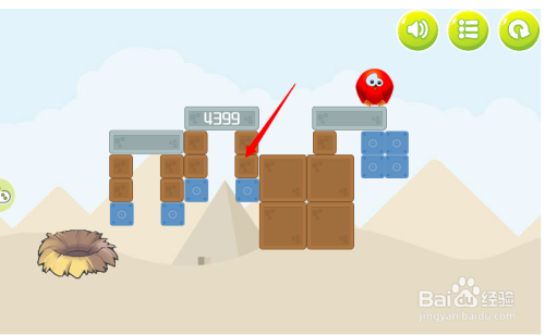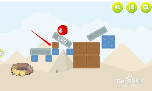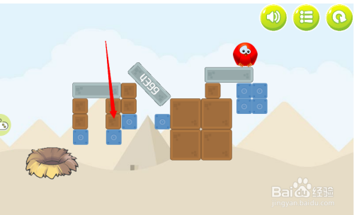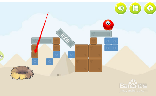 第八步:按照红色箭头,断根木块,回到关卡选择界面。