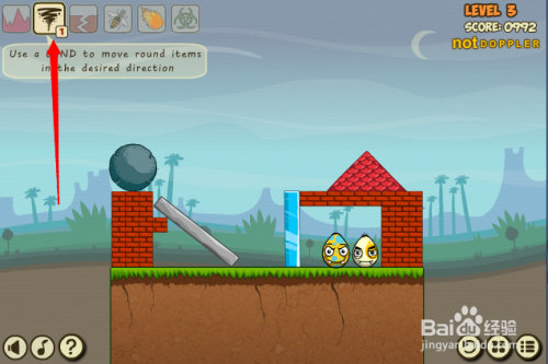 第七步:按照红色箭头,点击利用龙卷风道具。