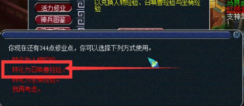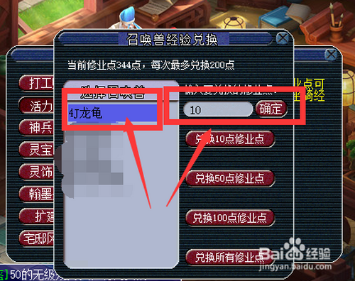 选定需要晋升经验的呼唤兽,并输入需要转化的求学点数目。