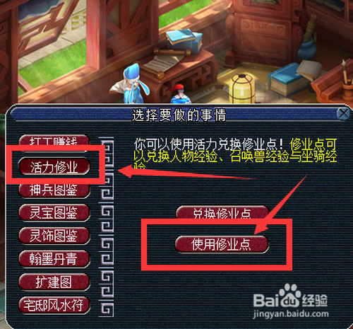 选择“活力求学”中的“利用求学点”选项。