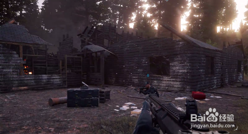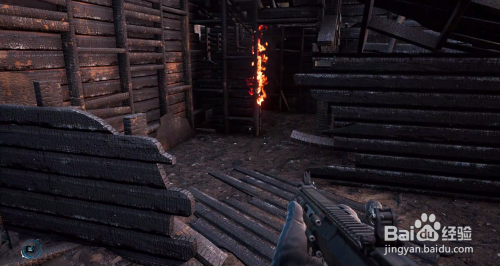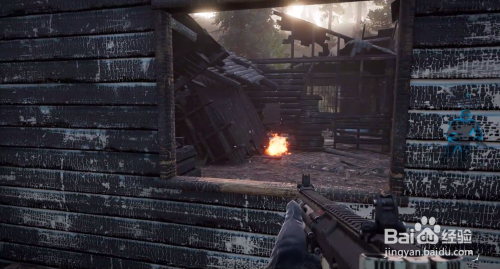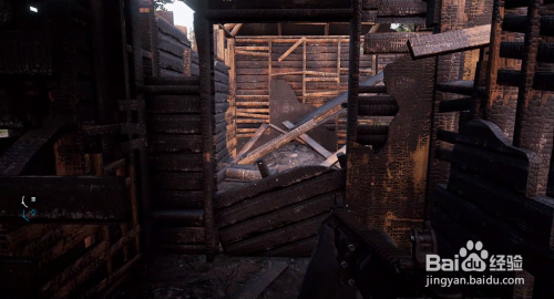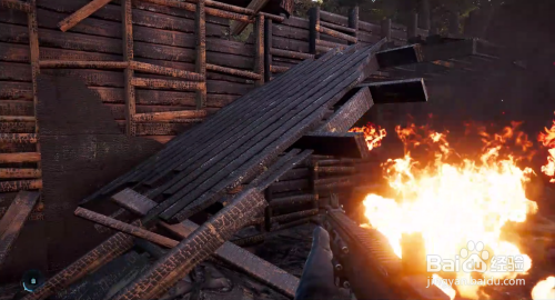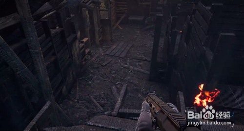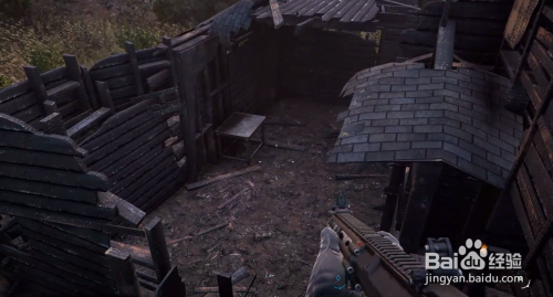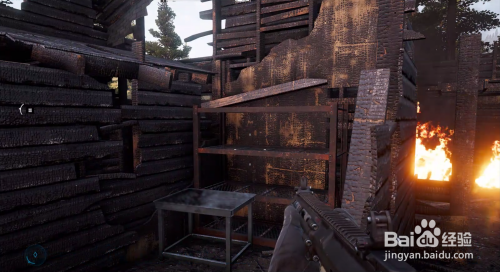 跳下来今后,我们直走在右边有个架子从那跳上去,上到屋顶