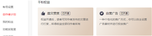 进入创作者打算,在千粉权益下方,开通图文赞赏。