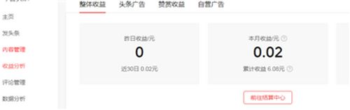打开电脑端头条号后台,找到收益阐发,可以查看赞赏收益详情。