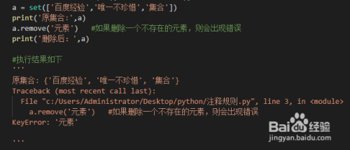 若是用remove()函数删除一个调集中不存在的元素,则会呈现错误