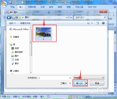 找到并选中需要处置的图片,按插入;