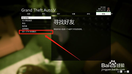 可以利用“↑、↓”偏向键来移动显示光标。移动到“进入GTA在线模式”然后按住Enter回车键。