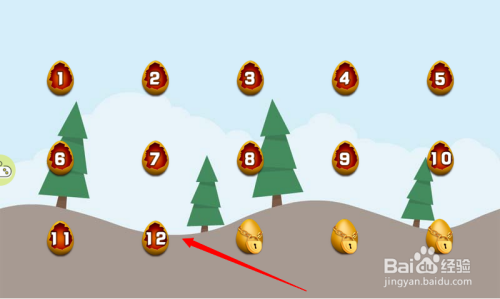 第二步:按照红色箭头,点击第十二关起头游戏。