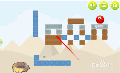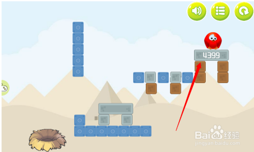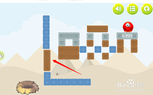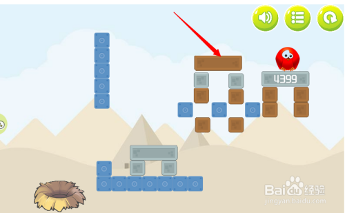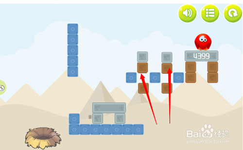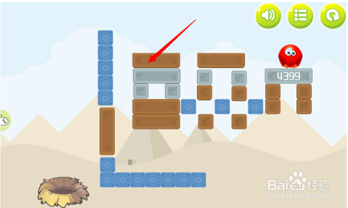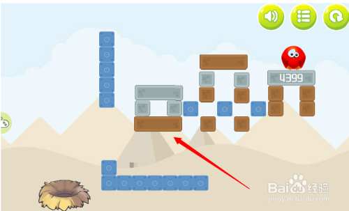 第八步:断根红色小鸟下方木块,回到关卡选择界面。