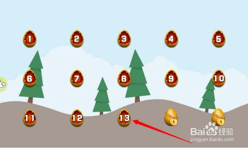 第二步:按照红色箭头,点击第十三关起头游戏。
