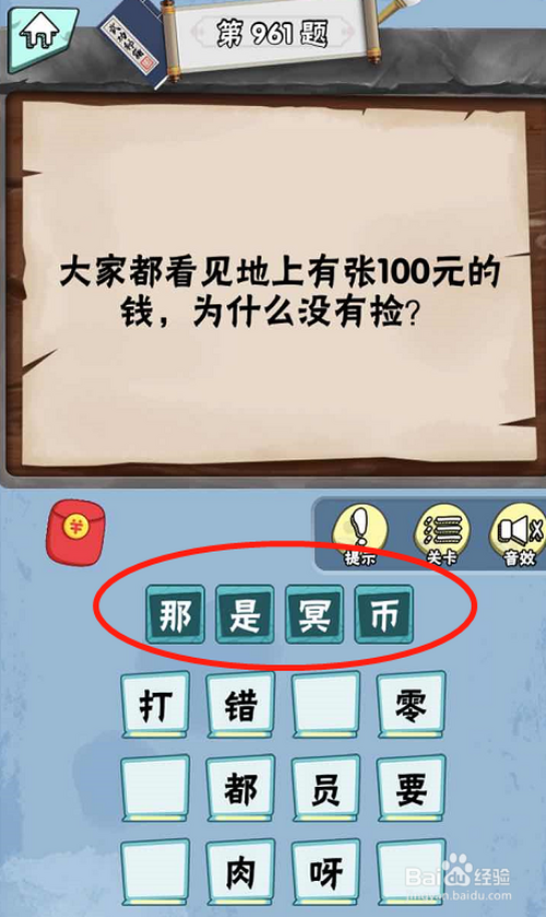 脑子急转弯达人游戏Lv5诺奖得本家儿961关内,提问大师都看见识上有张100元的钱,可是却没有人捡,这是为什么。