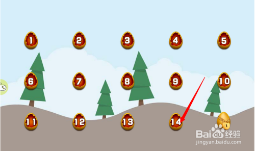 第二步:按照红色箭头,点击第十四关起头游戏。