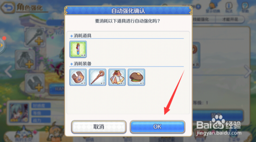 系统会主动设置装备摆设强扮装备,点击ok。