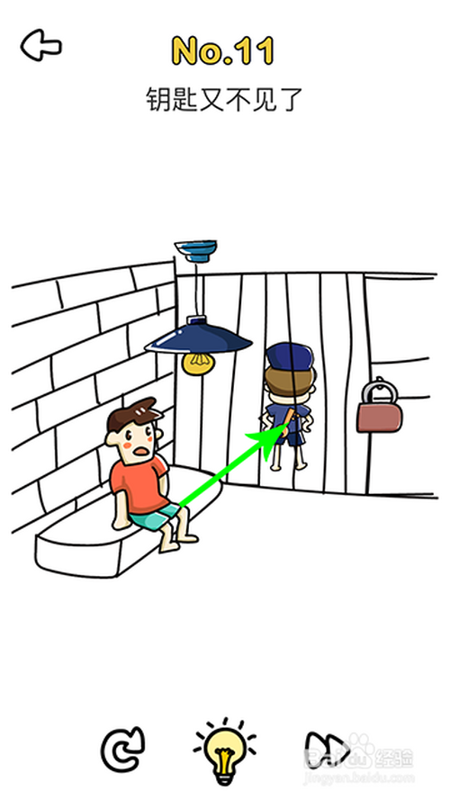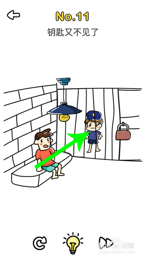 1.点击11关进入,自右标的目的左滑动门卫,点击门卫背后的钥匙通关。