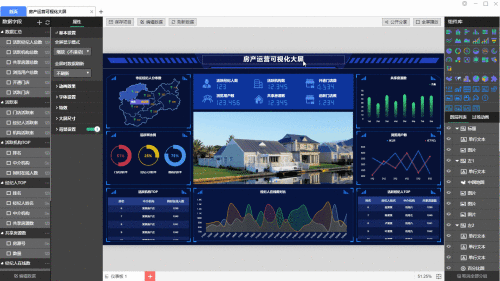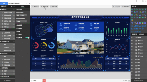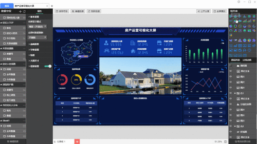 本文以房产运营可视化大屏为例为大师演示若何在软件供给的模板根本上点窜大屏。
