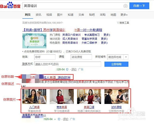 搜刮成果的题目、描述和配图等称为竞价推广的创意。