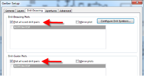 Drill Drawing Plots 对“Plot all used drill Pairs”及“Plot all used drill pairs”进行勾选,暗示对用到的钻孔类型都进行输出。