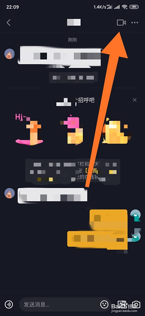 在私信界面,点击右上角录像机图标,对方接管,就起头视频通话了