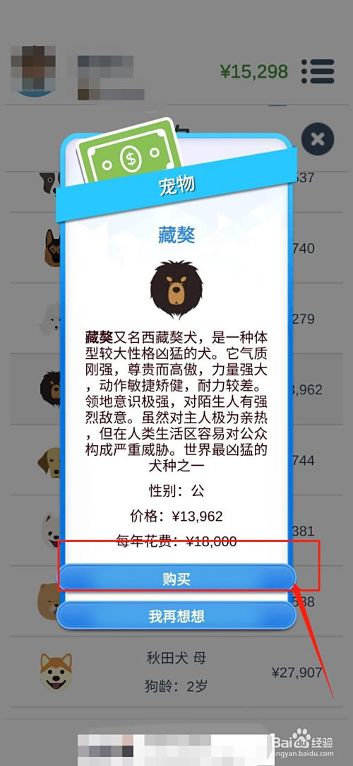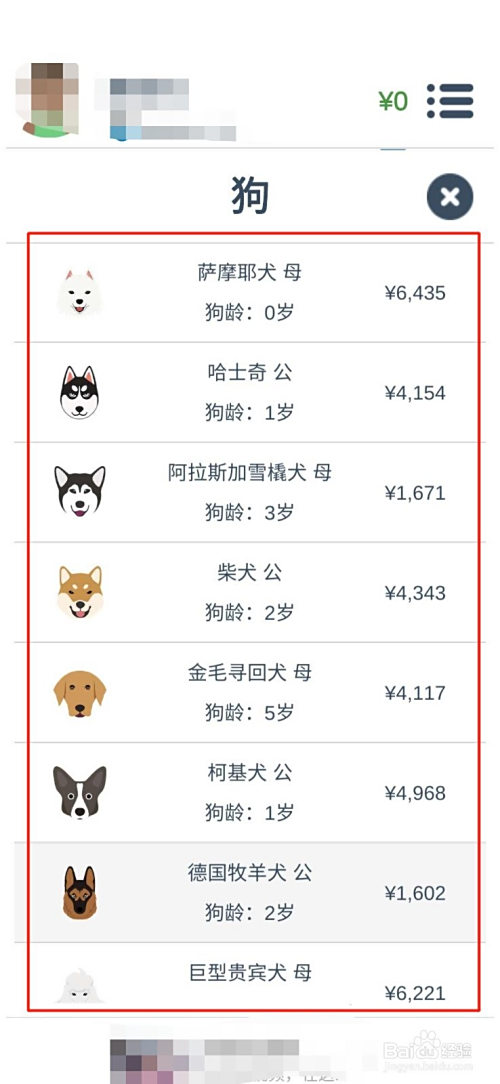 宠物里还有品种区分。分歧品种的宠物价钱也分歧。如图