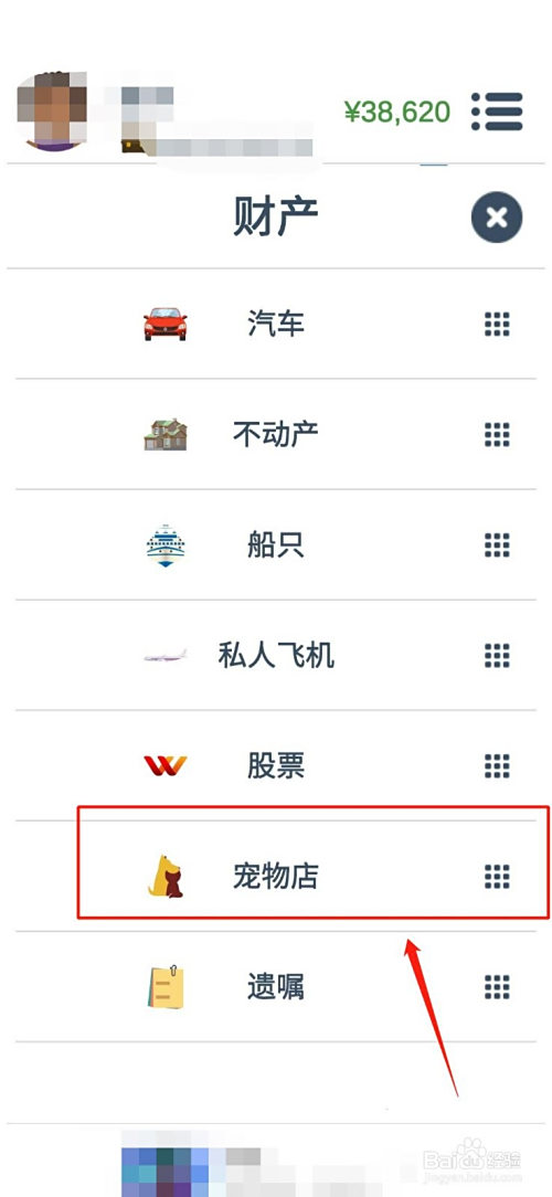 3.点击“财富界面”里第六行的“宠物店”