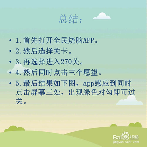 5.最后成果如下图,app感应到同时点击屏幕三处,呈现绿色对勾即可过关。