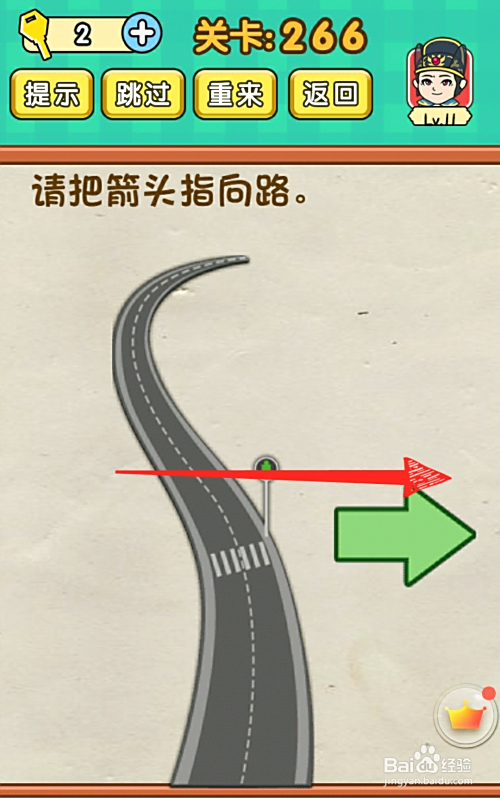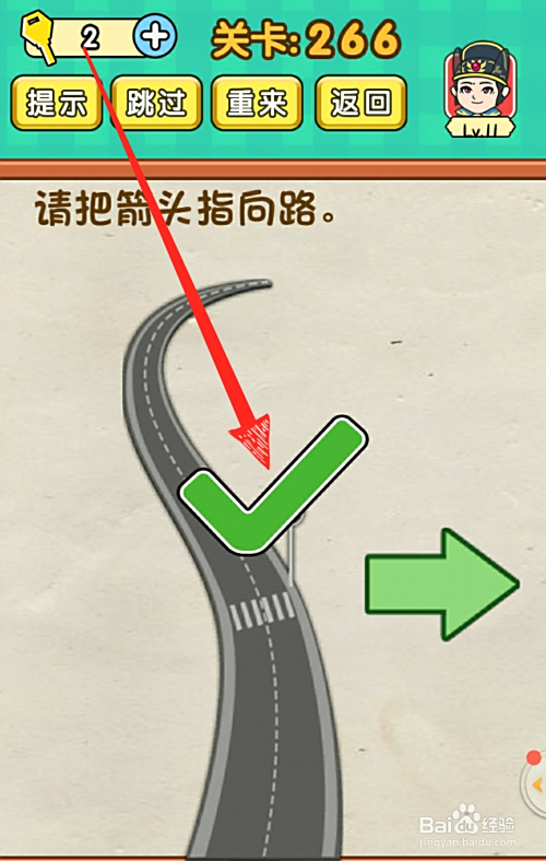 5.最后成果如下图,APP感应到箭头偏向提醒绿色对勾即可过关。